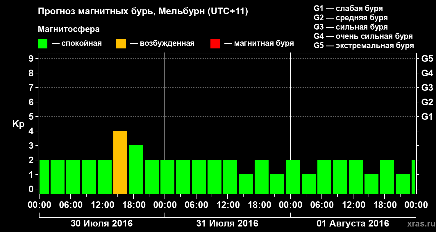 Прогноз магнитных бурь в Мельбурне — 30 июля 2016 года