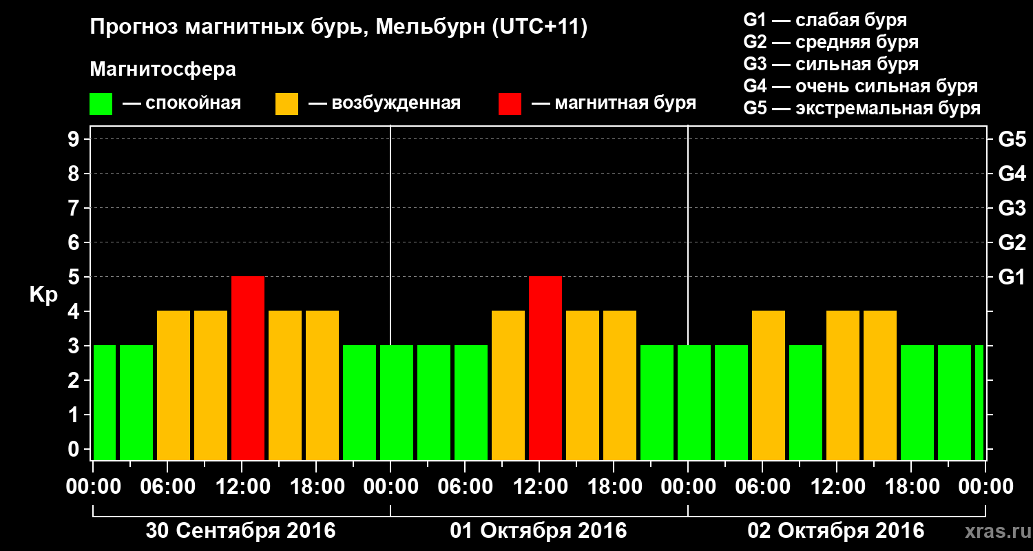Прогноз магнитных бурь в Мельбурне — 30 сентября 2016 года