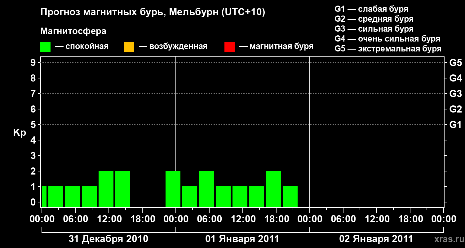 Прогноз магнитных бурь в Мельбурне — 31 декабря 2010 года