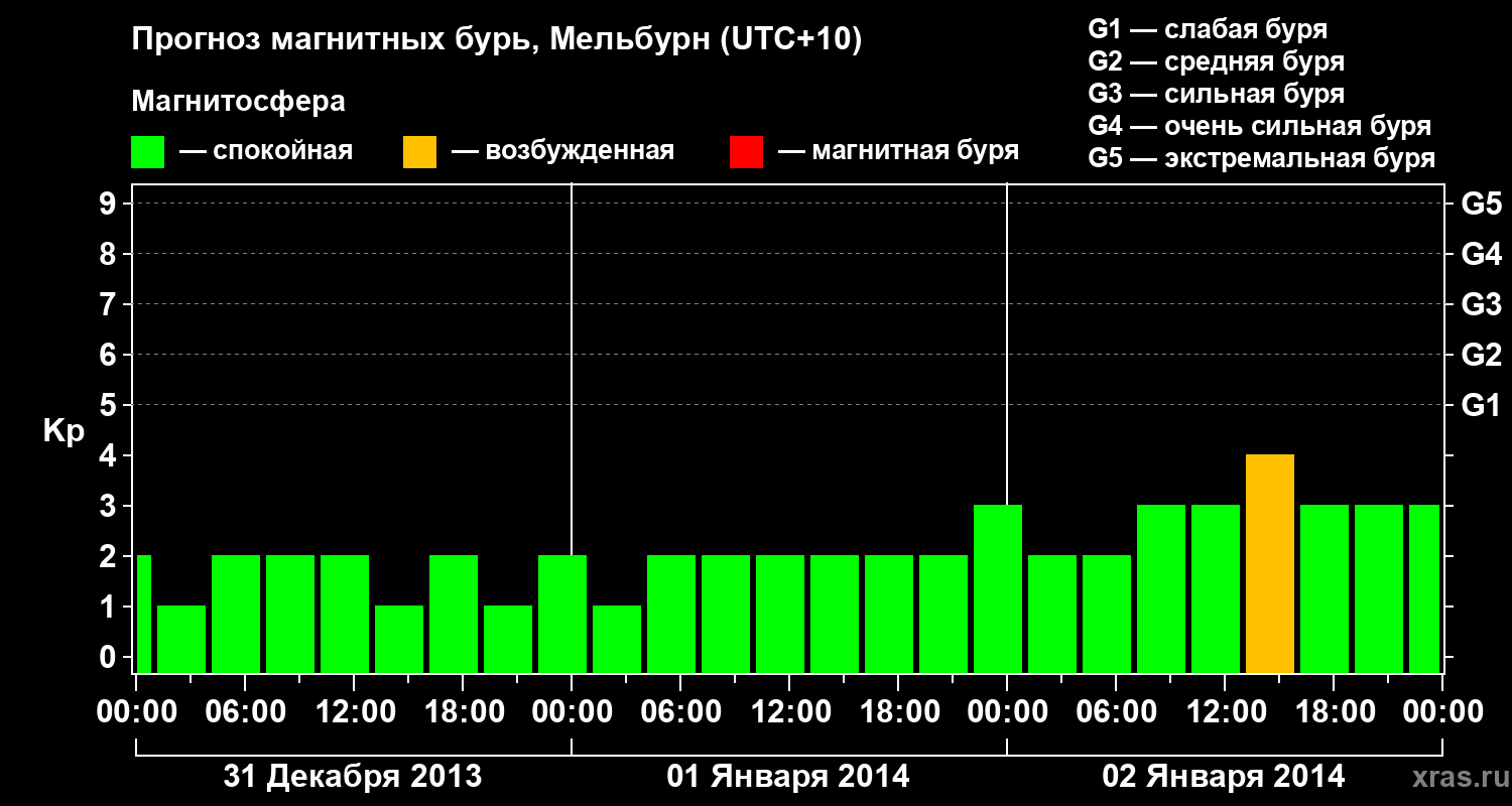 Прогноз магнитных бурь в Мельбурне — 31 декабря 2013 года