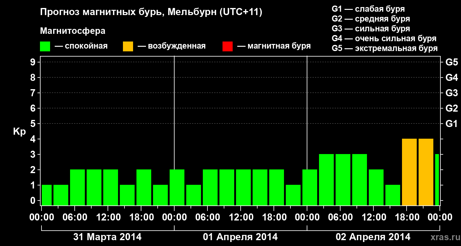 Прогноз магнитных бурь в Мельбурне — 31 марта 2014 года