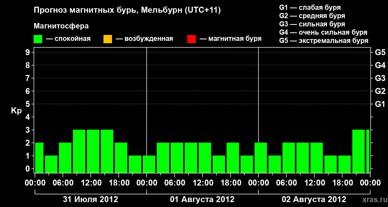 Прогноз магнитных бурь в Мельбурне — 31 июля 2012 года