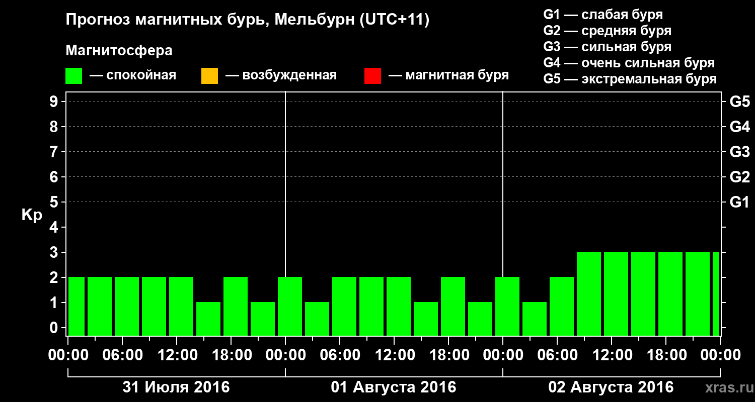 Прогноз магнитных бурь в Мельбурне — 31 июля 2016 года