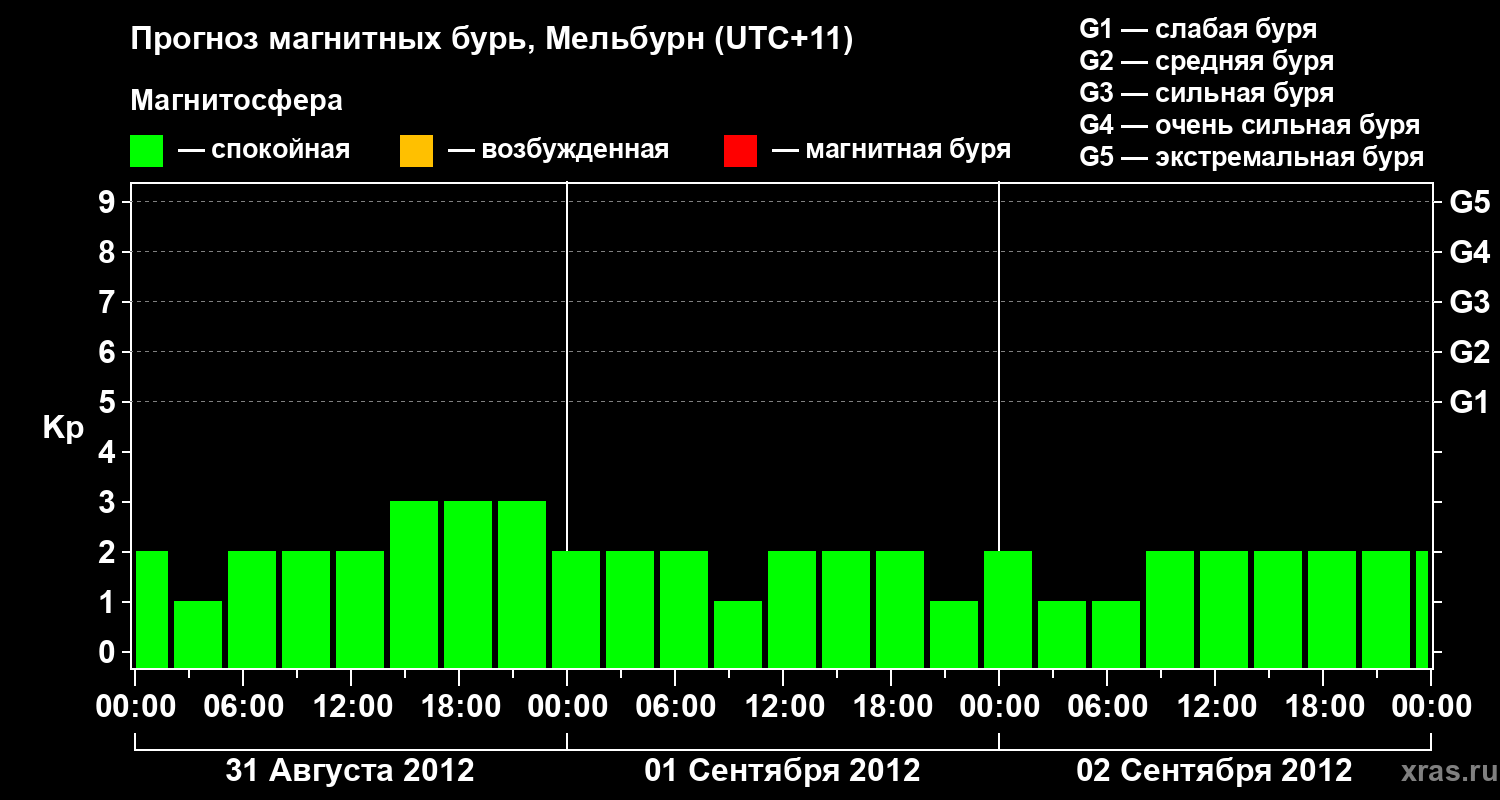Прогноз магнитных бурь в Мельбурне — 31 августа 2012 года