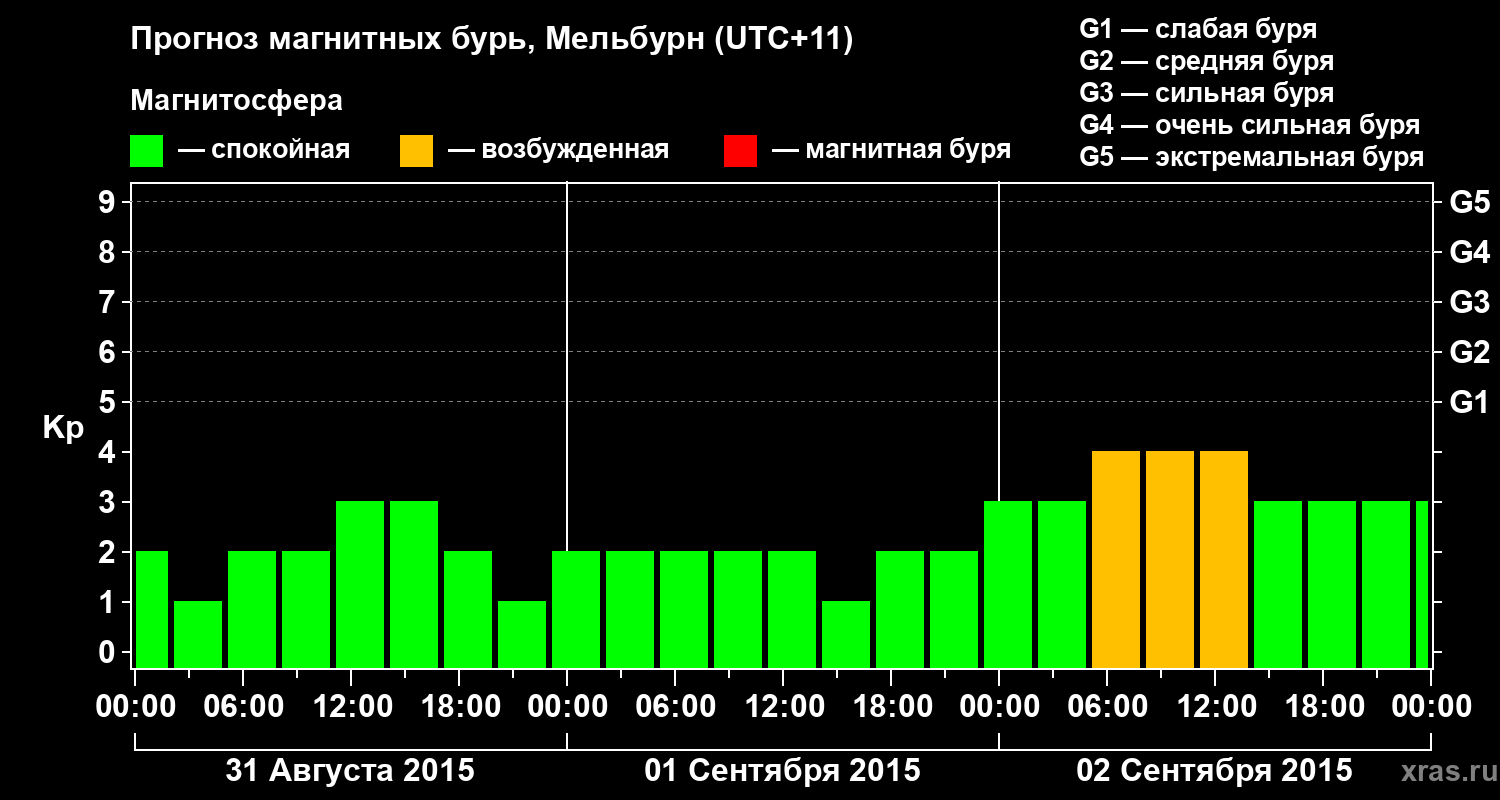 Прогноз магнитных бурь в Мельбурне — 31 августа 2015 года