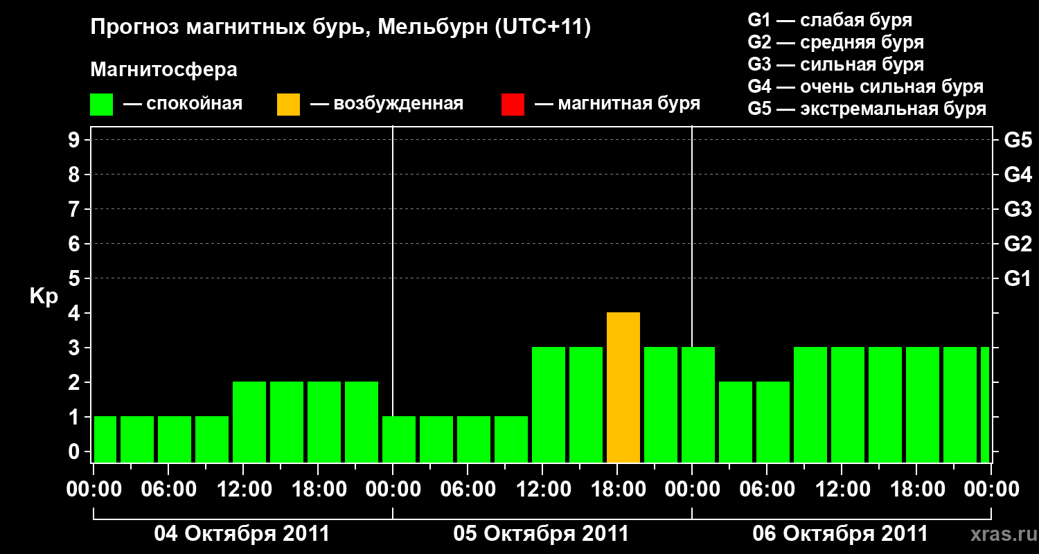 Прогноз магнитных бурь в Мельбурне — 4 октября 2011 года