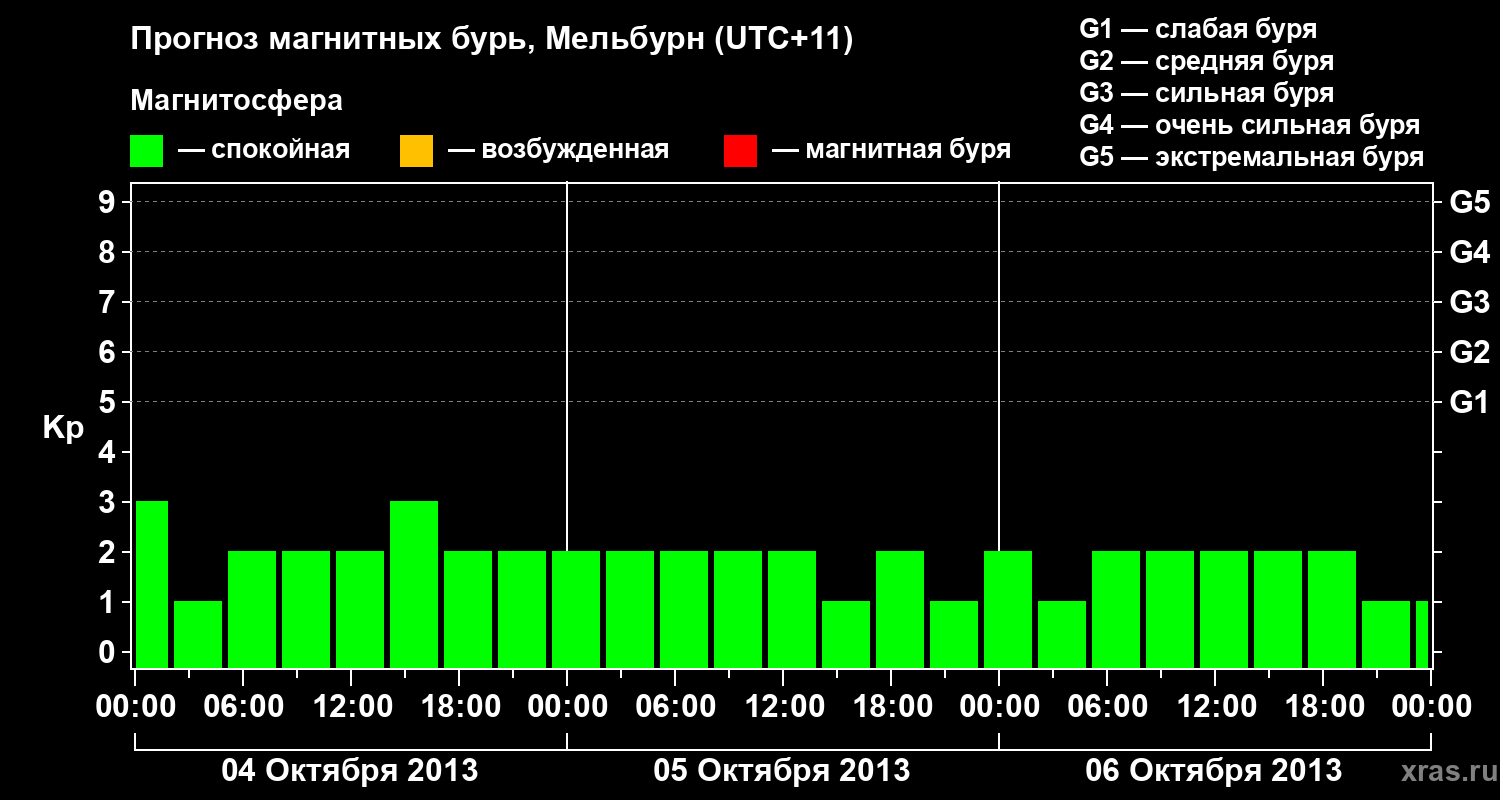 Прогноз магнитных бурь в Мельбурне — 4 октября 2013 года