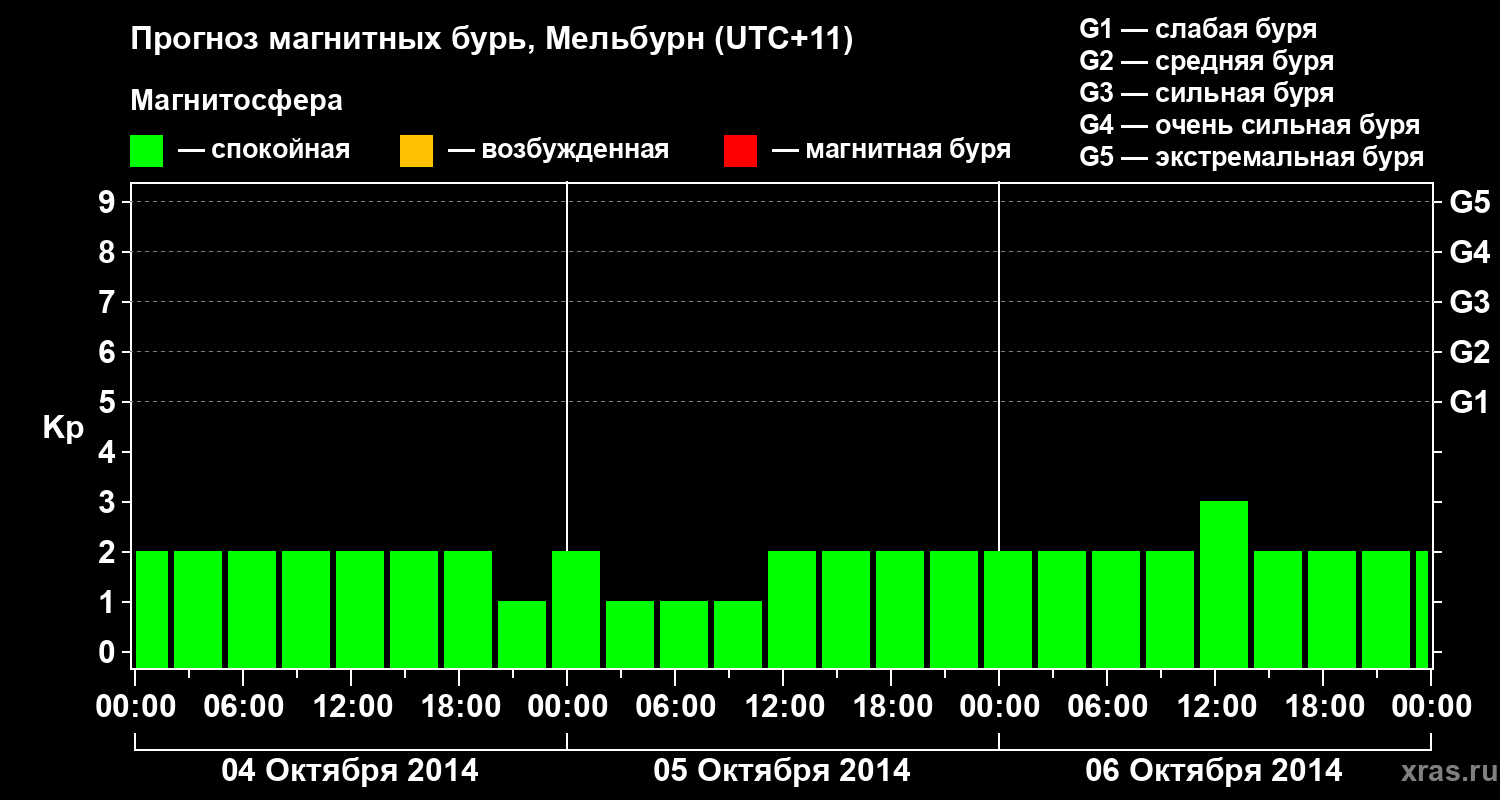 Прогноз магнитных бурь в Мельбурне — 4 октября 2014 года