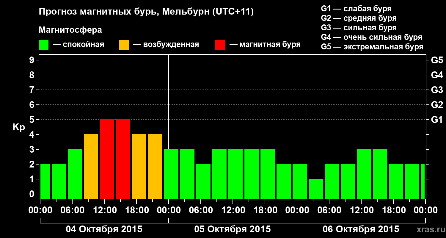 Прогноз магнитных бурь в Мельбурне — 4 октября 2015 года