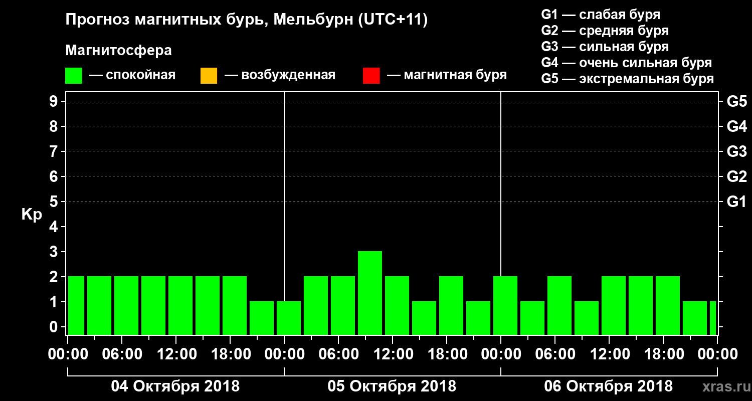 Прогноз магнитных бурь в Мельбурне — 4 октября 2018 года