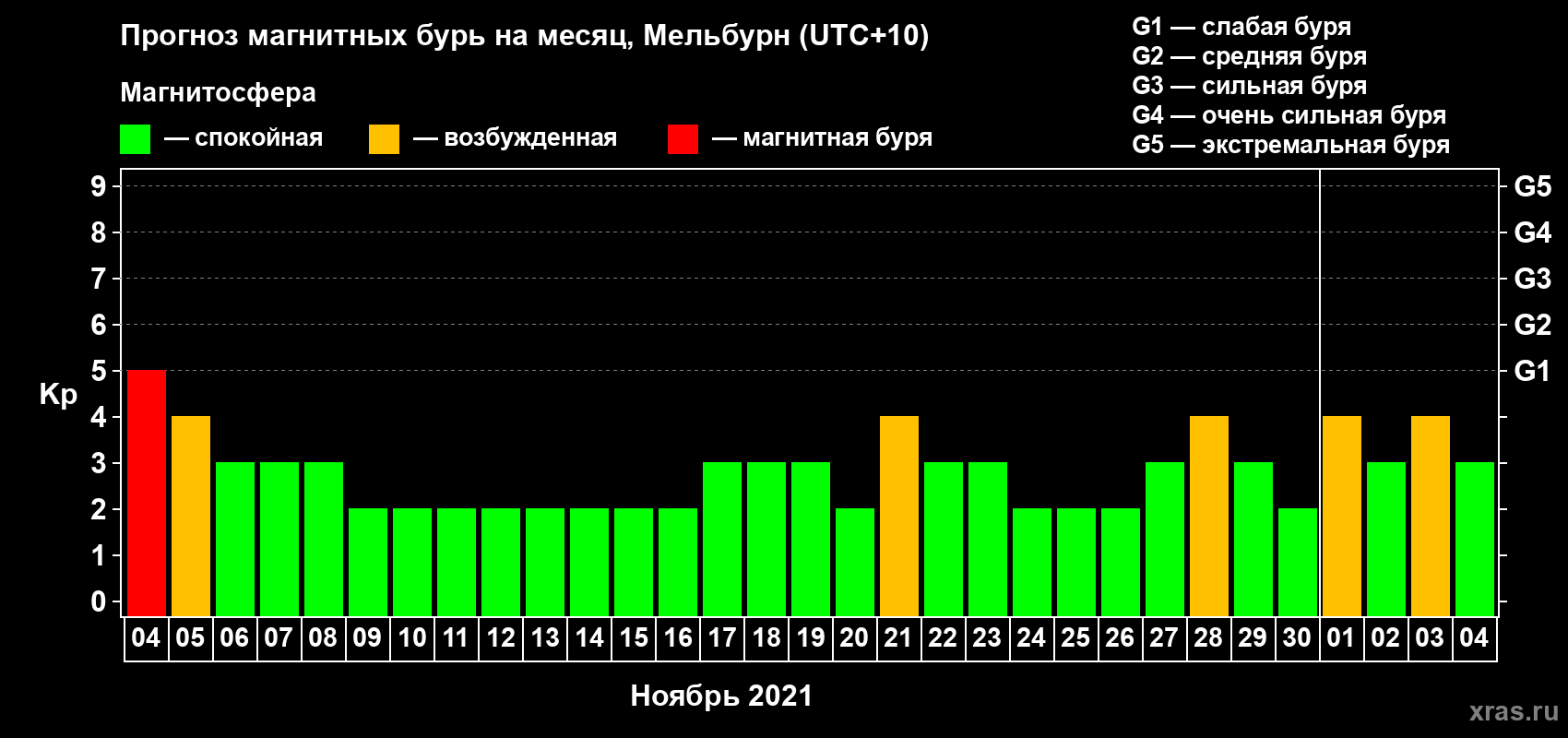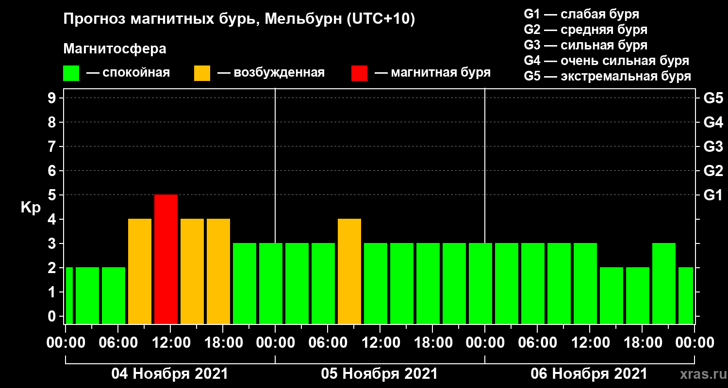 Прогноз магнитных бурь в Мельбурне — 4 ноября 2021 года
