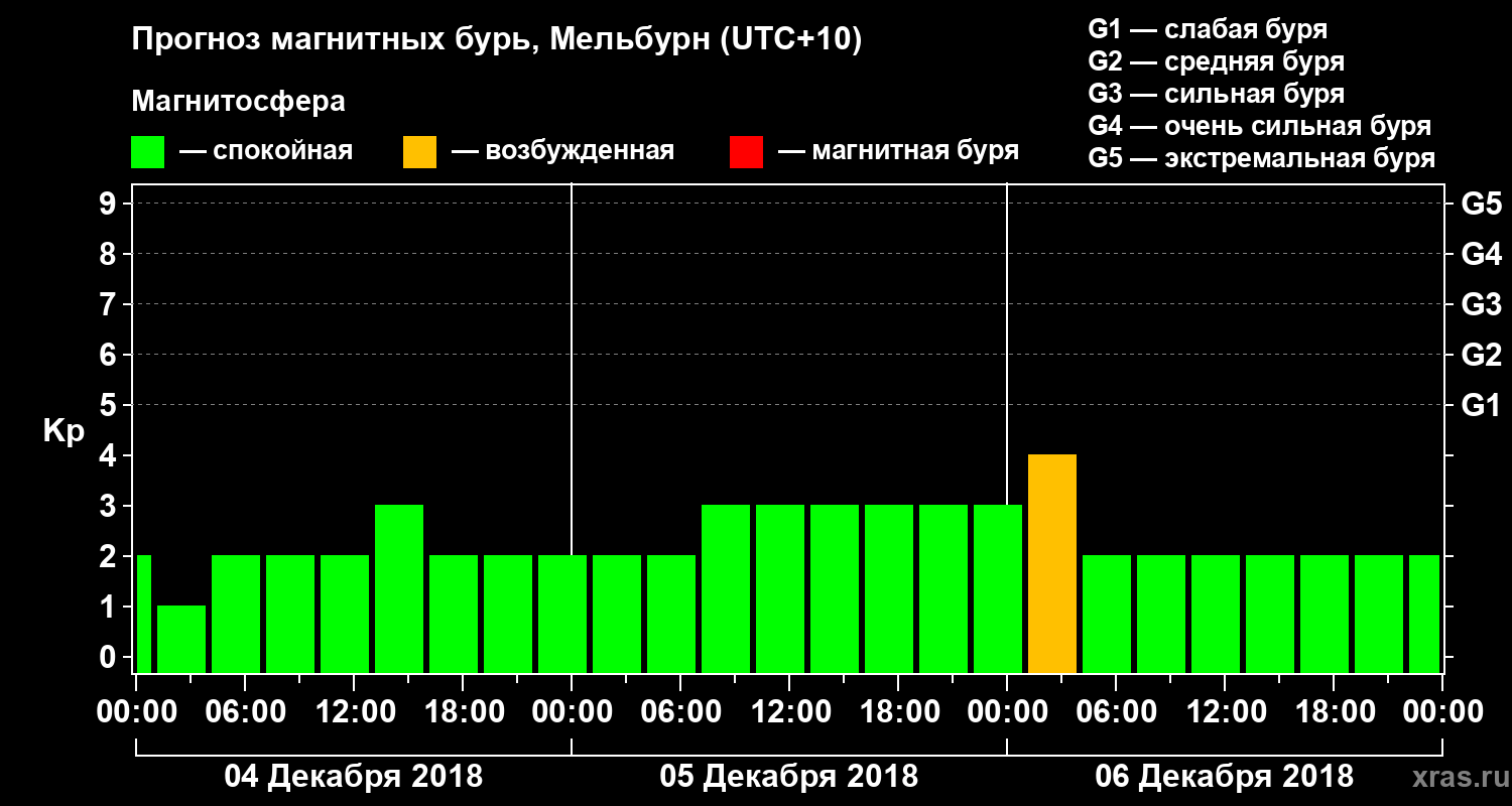 Прогноз магнитных бурь в Мельбурне — 4 декабря 2018 года