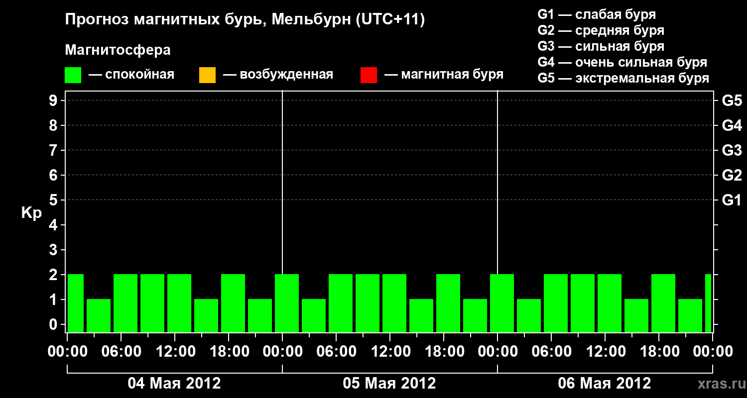 Прогноз магнитных бурь в Мельбурне — 4 мая 2012 года