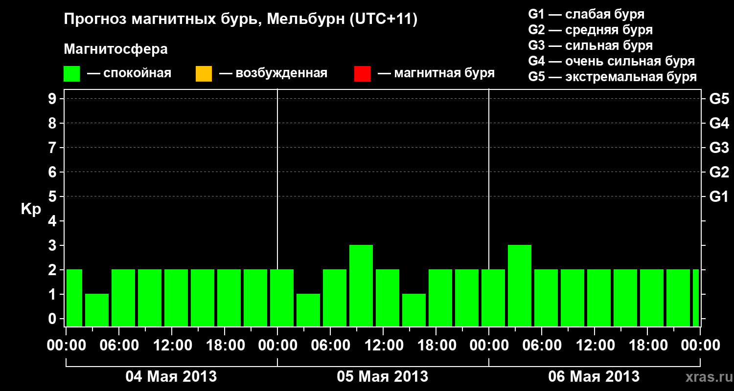 Прогноз магнитных бурь в Мельбурне — 4 мая 2013 года