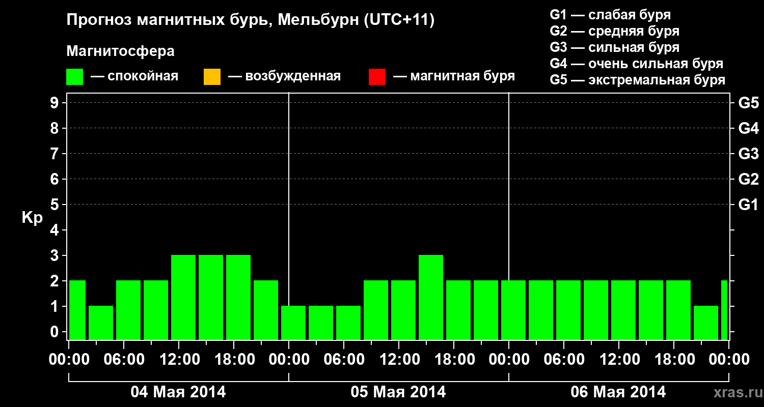Прогноз магнитных бурь в Мельбурне — 4 мая 2014 года