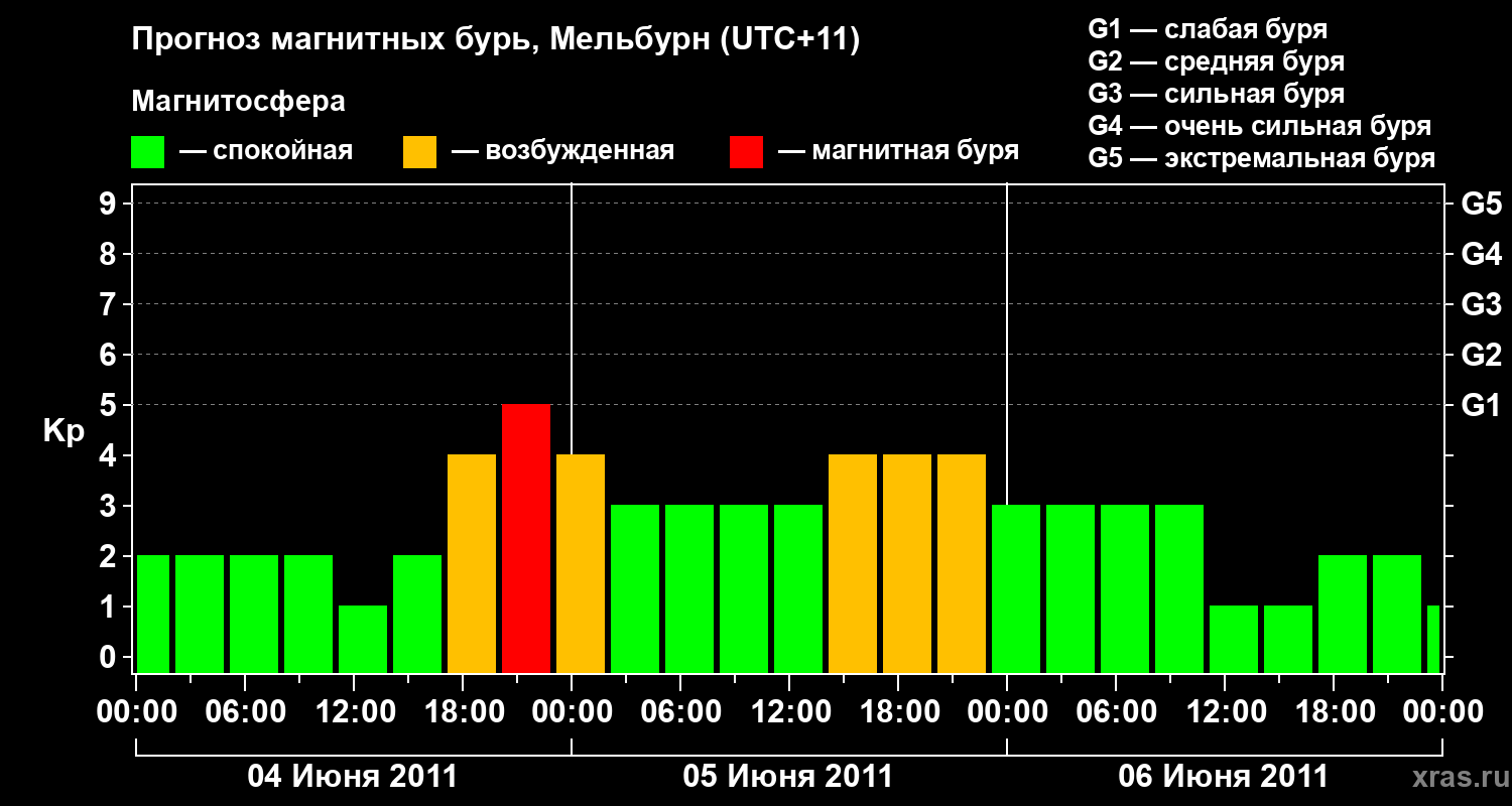 Прогноз магнитных бурь в Мельбурне — 4 июня 2011 года