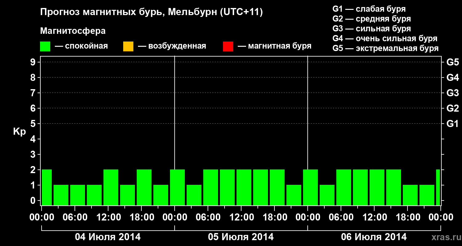 Прогноз магнитных бурь в Мельбурне — 4 июля 2014 года