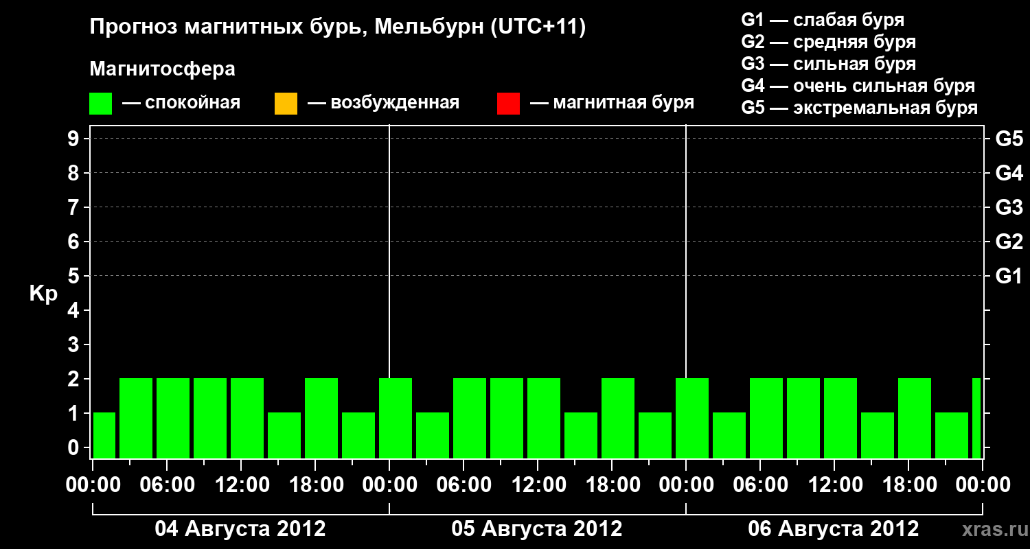 Прогноз магнитных бурь в Мельбурне — 4 августа 2012 года