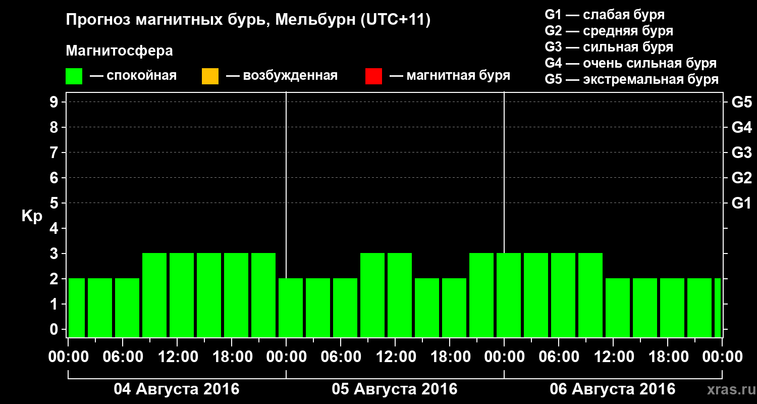 Прогноз магнитных бурь в Мельбурне — 4 августа 2016 года
