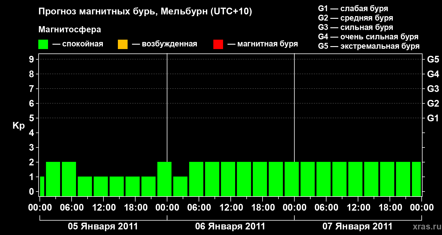 Прогноз магнитных бурь в Мельбурне — 5 января 2011 года