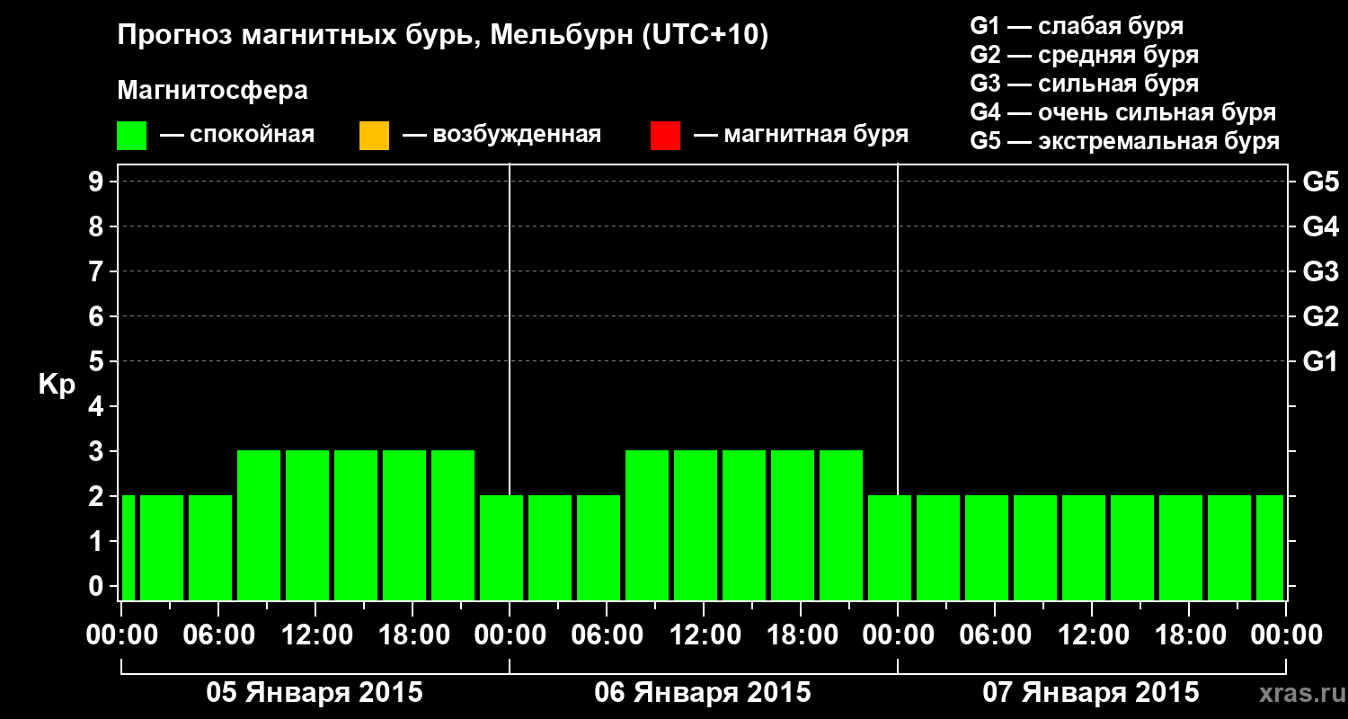 Прогноз магнитных бурь в Мельбурне — 5 января 2015 года