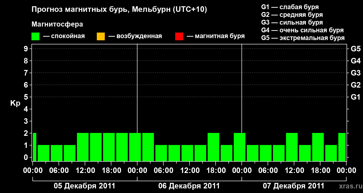 Прогноз магнитных бурь в Мельбурне — 5 декабря 2011 года