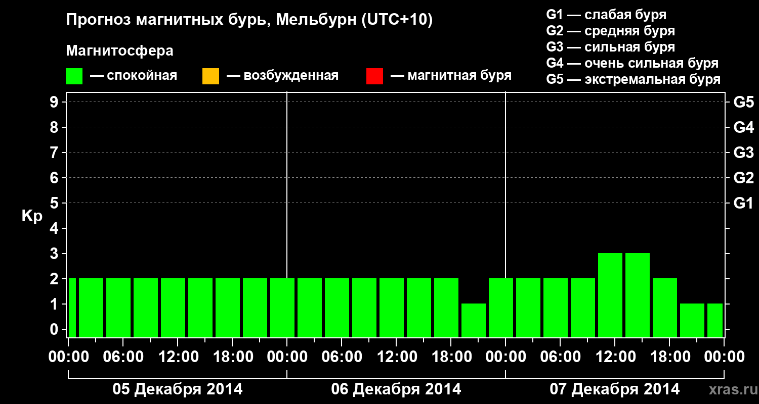 Прогноз магнитных бурь в Мельбурне — 5 декабря 2014 года