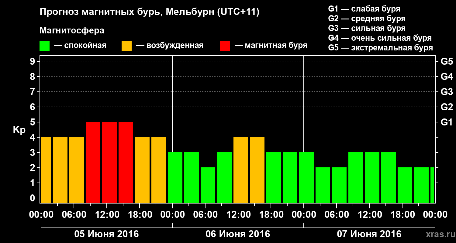 Прогноз магнитных бурь в Мельбурне — 5 июня 2016 года