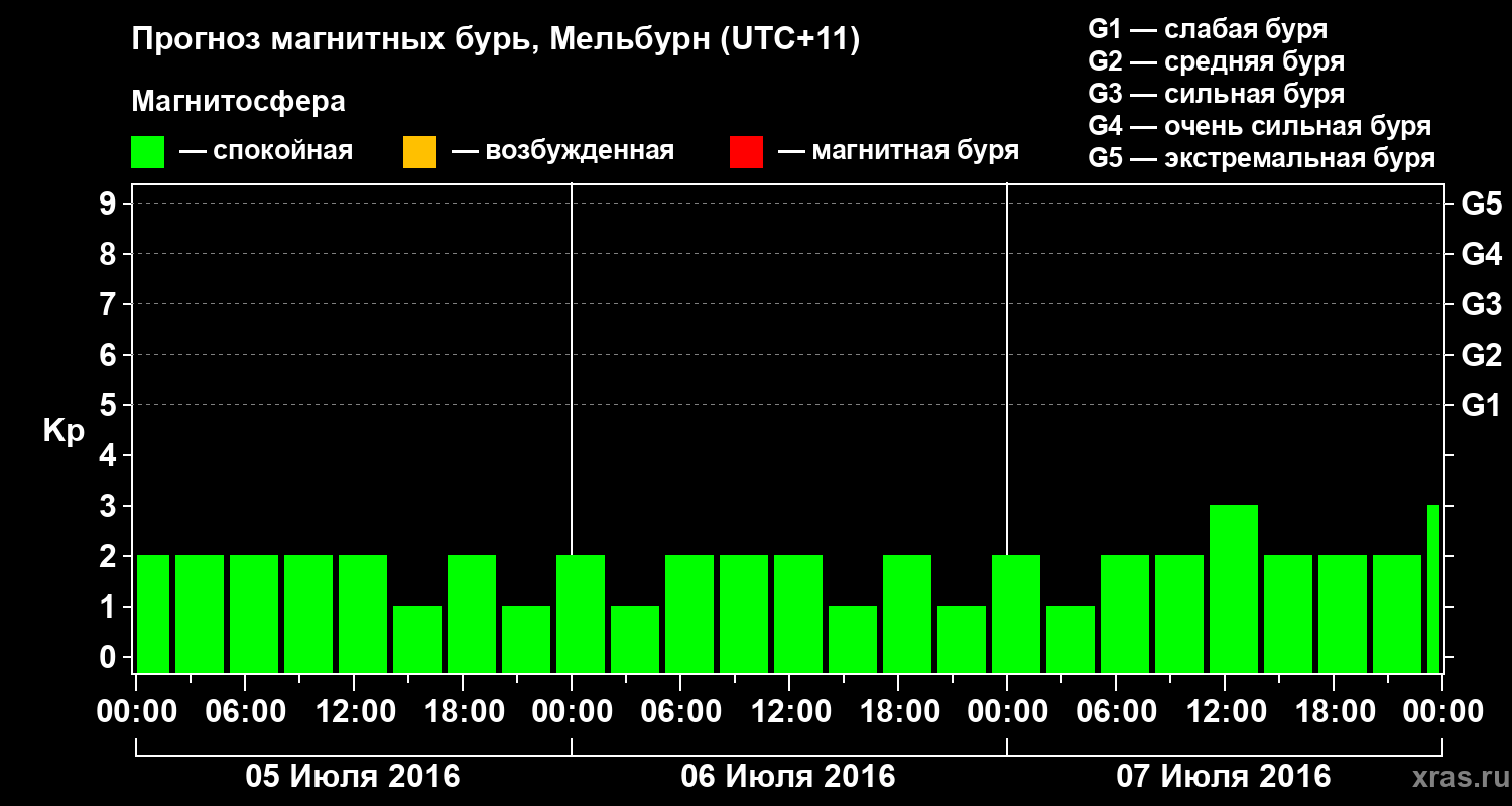 Прогноз магнитных бурь в Мельбурне — 5 июля 2016 года