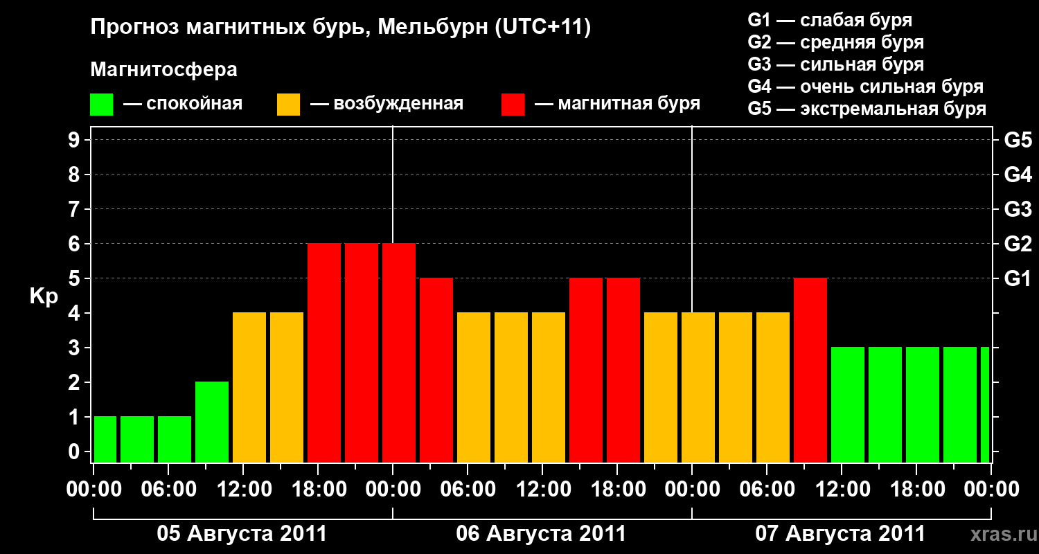 Прогноз магнитных бурь в Мельбурне — 5 августа 2011 года
