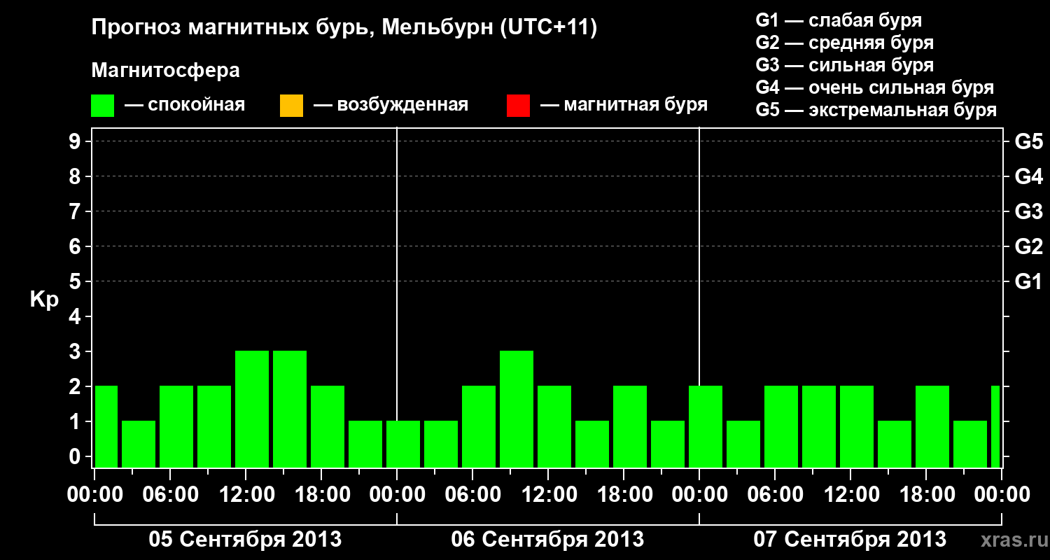Прогноз магнитных бурь в Мельбурне — 5 сентября 2013 года