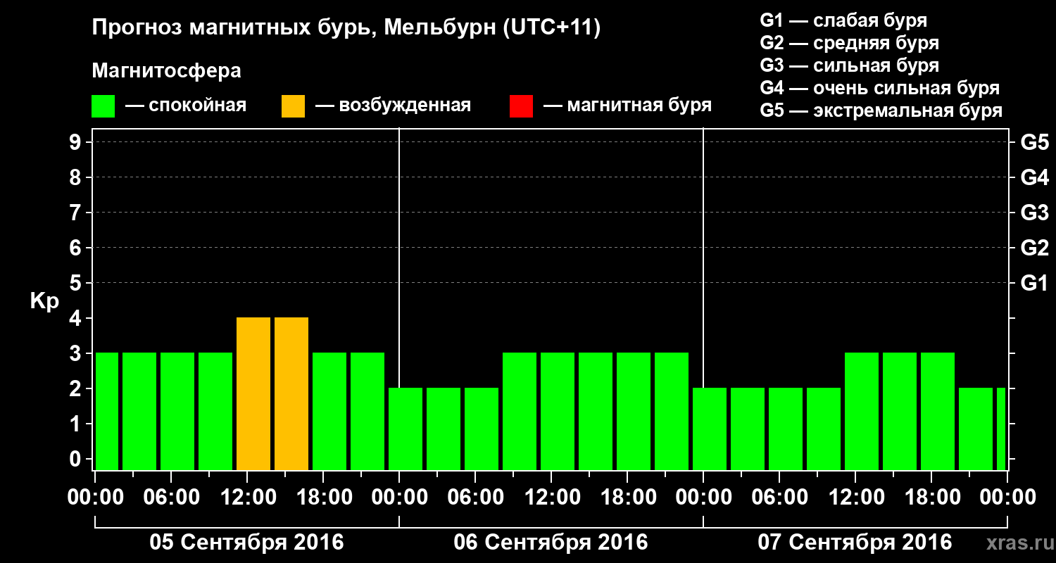 Прогноз магнитных бурь в Мельбурне — 5 сентября 2016 года