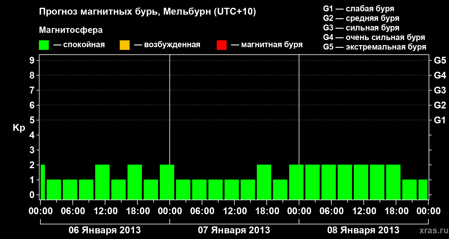 Прогноз магнитных бурь в Мельбурне — 6 января 2013 года