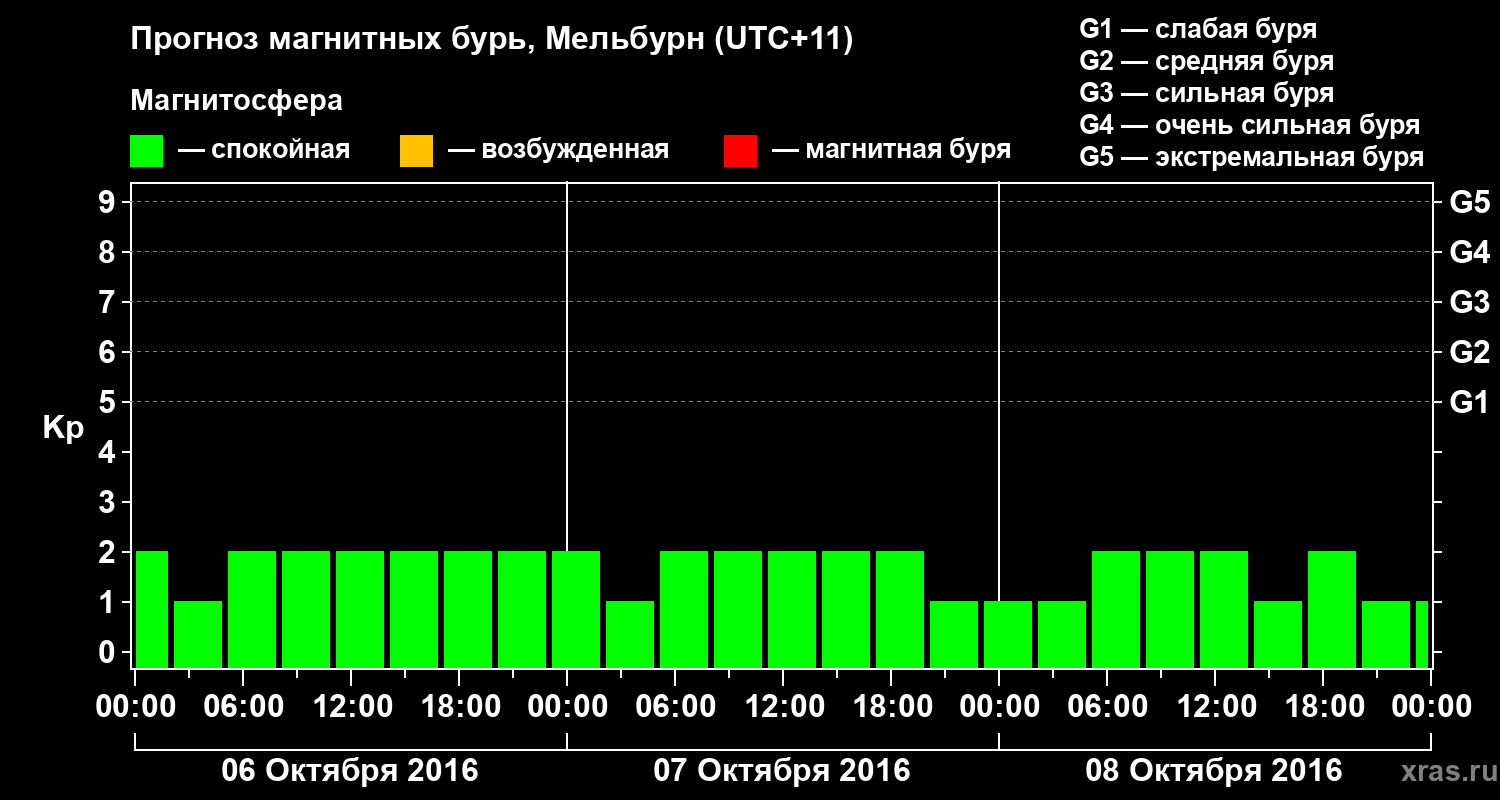 Прогноз магнитных бурь в Мельбурне — 6 октября 2016 года