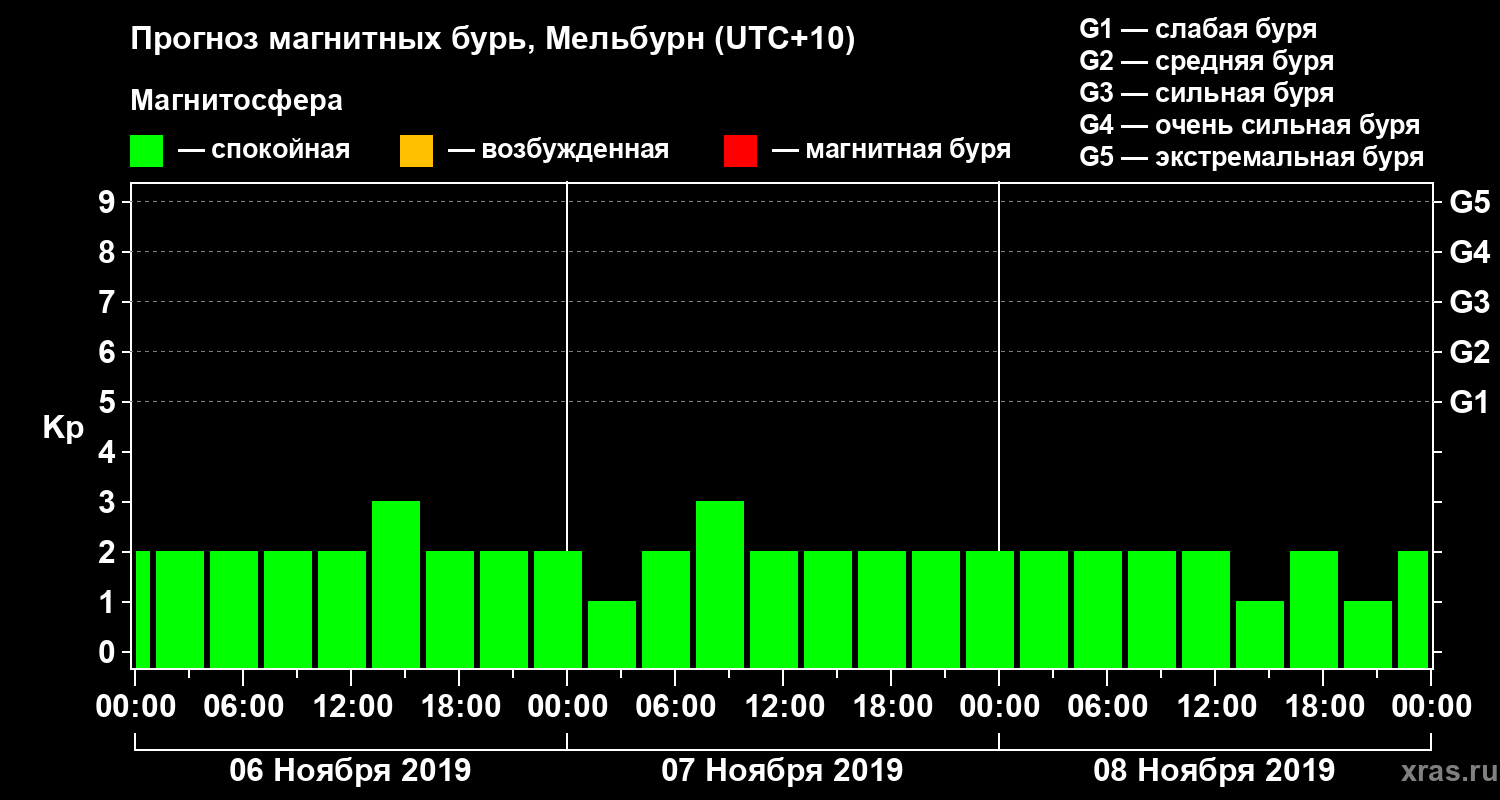 Прогноз магнитных бурь в Мельбурне — 6 ноября 2019 года