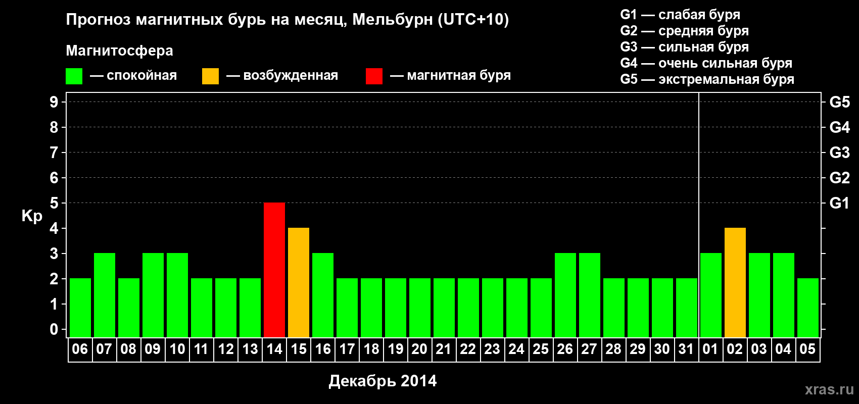Прогноз магнитных бурь в Мельбурне — 6 декабря 2013 года