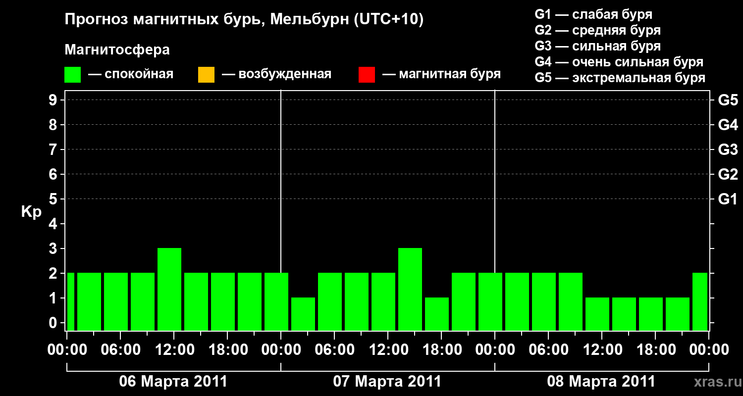 Прогноз магнитных бурь в Мельбурне — 6 марта 2011 года