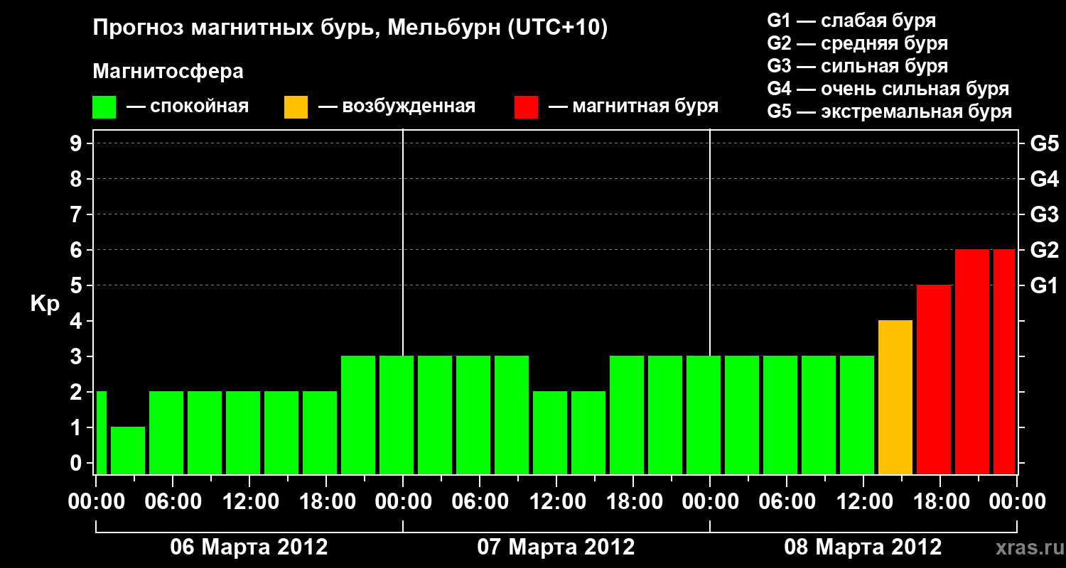 Прогноз магнитных бурь в Мельбурне — 6 марта 2012 года