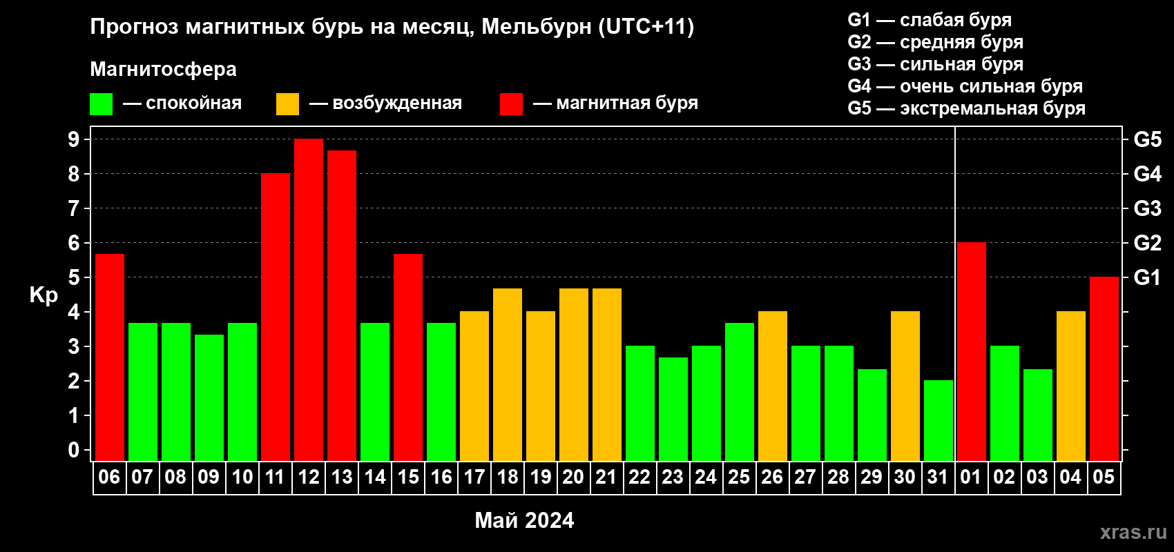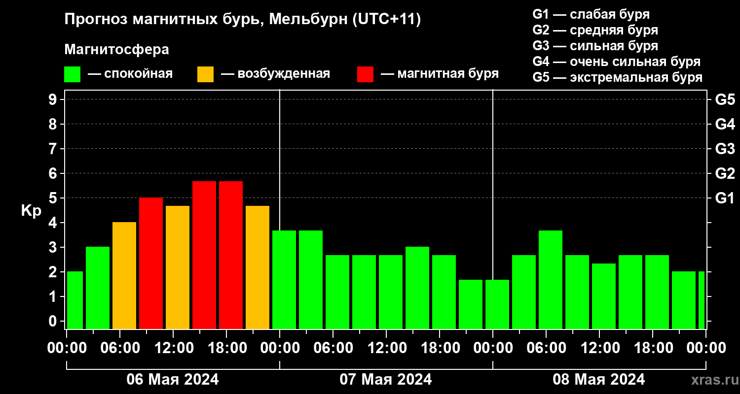 Прогноз магнитных бурь в Мельбурне — 6 мая 2024 года