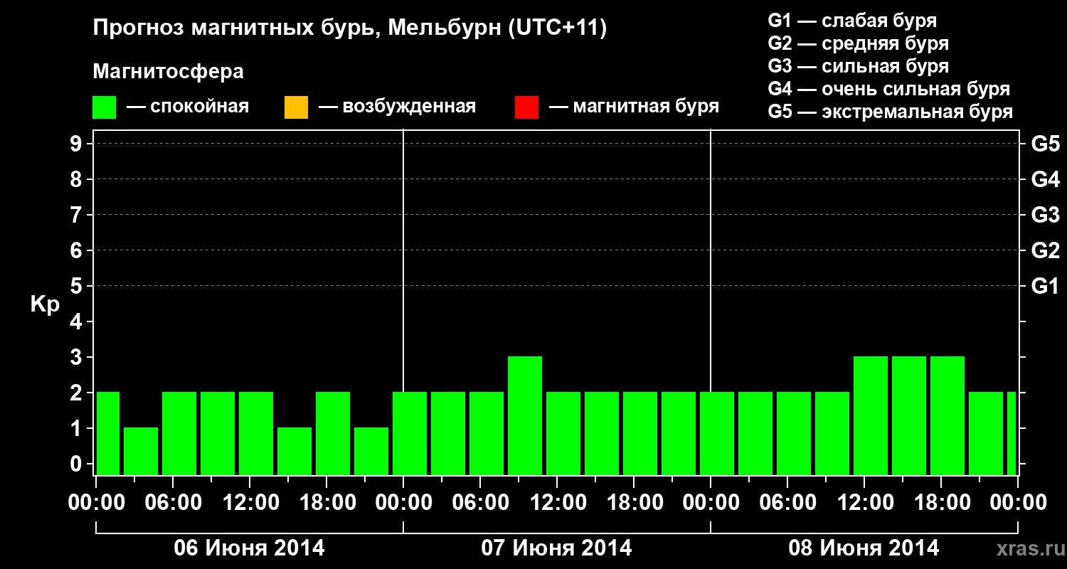 Прогноз магнитных бурь в Мельбурне — 6 июня 2014 года