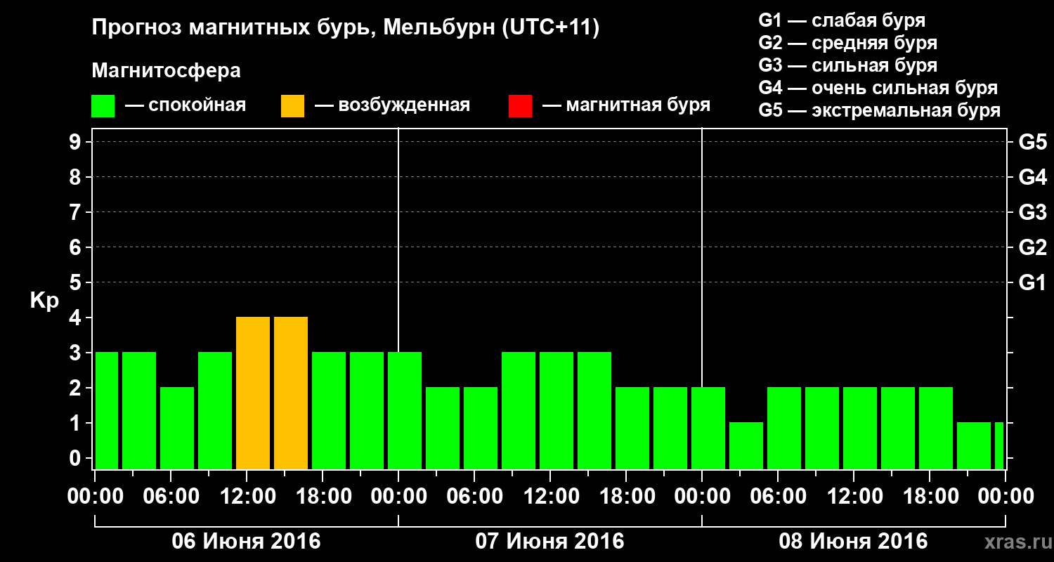 Прогноз магнитных бурь в Мельбурне — 6 июня 2016 года