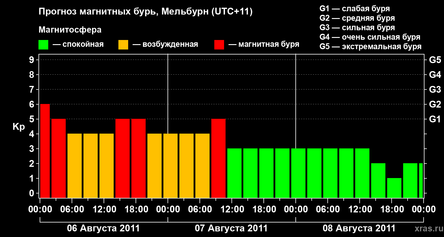 Прогноз магнитных бурь в Мельбурне — 6 августа 2011 года