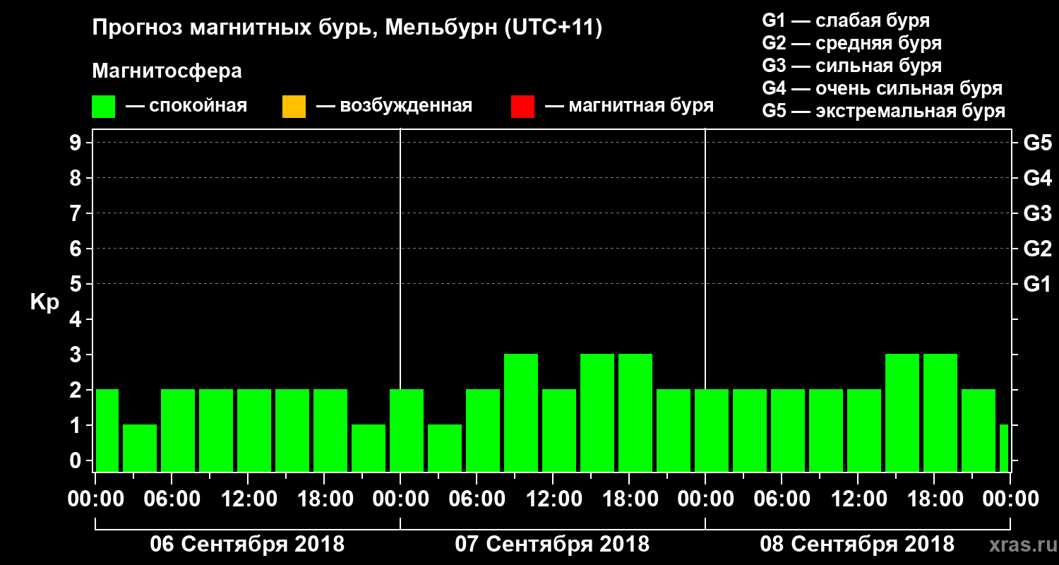 Прогноз магнитных бурь в Мельбурне — 6 сентября 2018 года