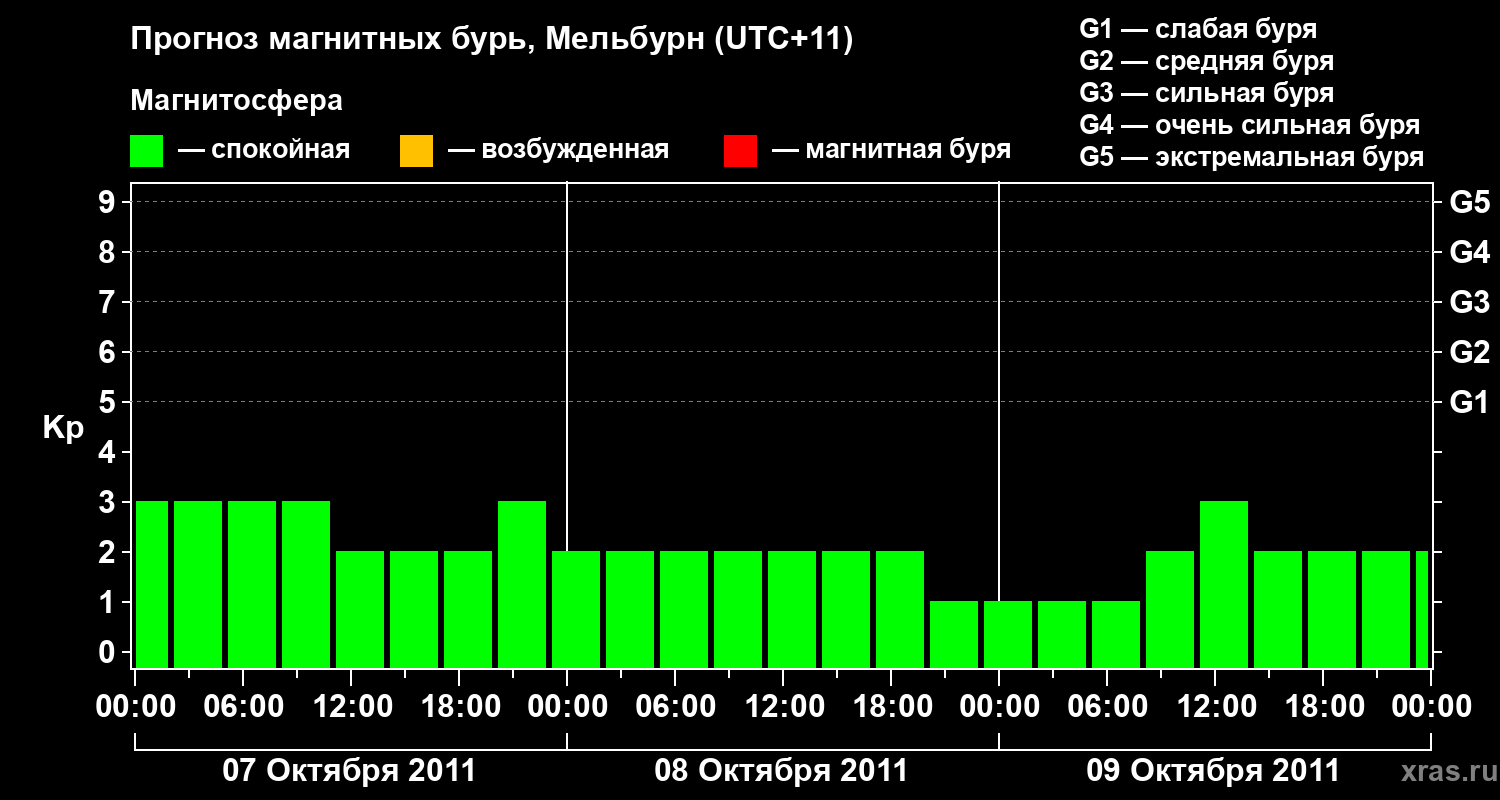 Прогноз магнитных бурь в Мельбурне — 7 октября 2011 года