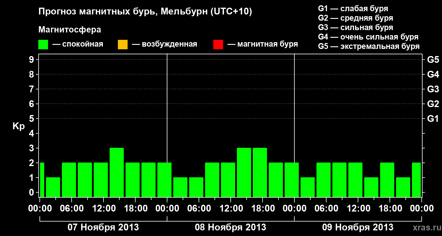 Прогноз магнитных бурь в Мельбурне — 7 ноября 2013 года