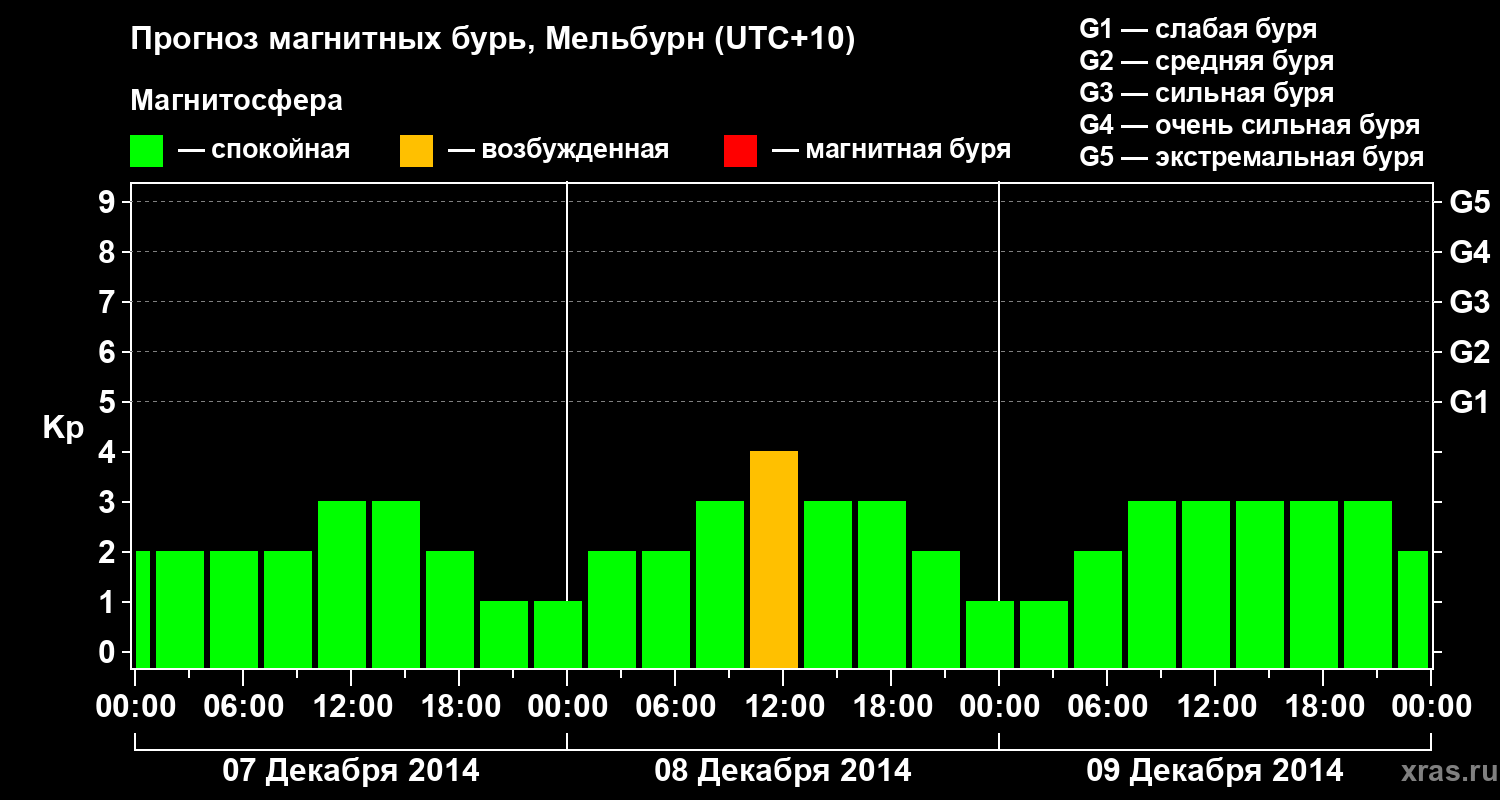 Прогноз магнитных бурь в Мельбурне — 7 декабря 2014 года