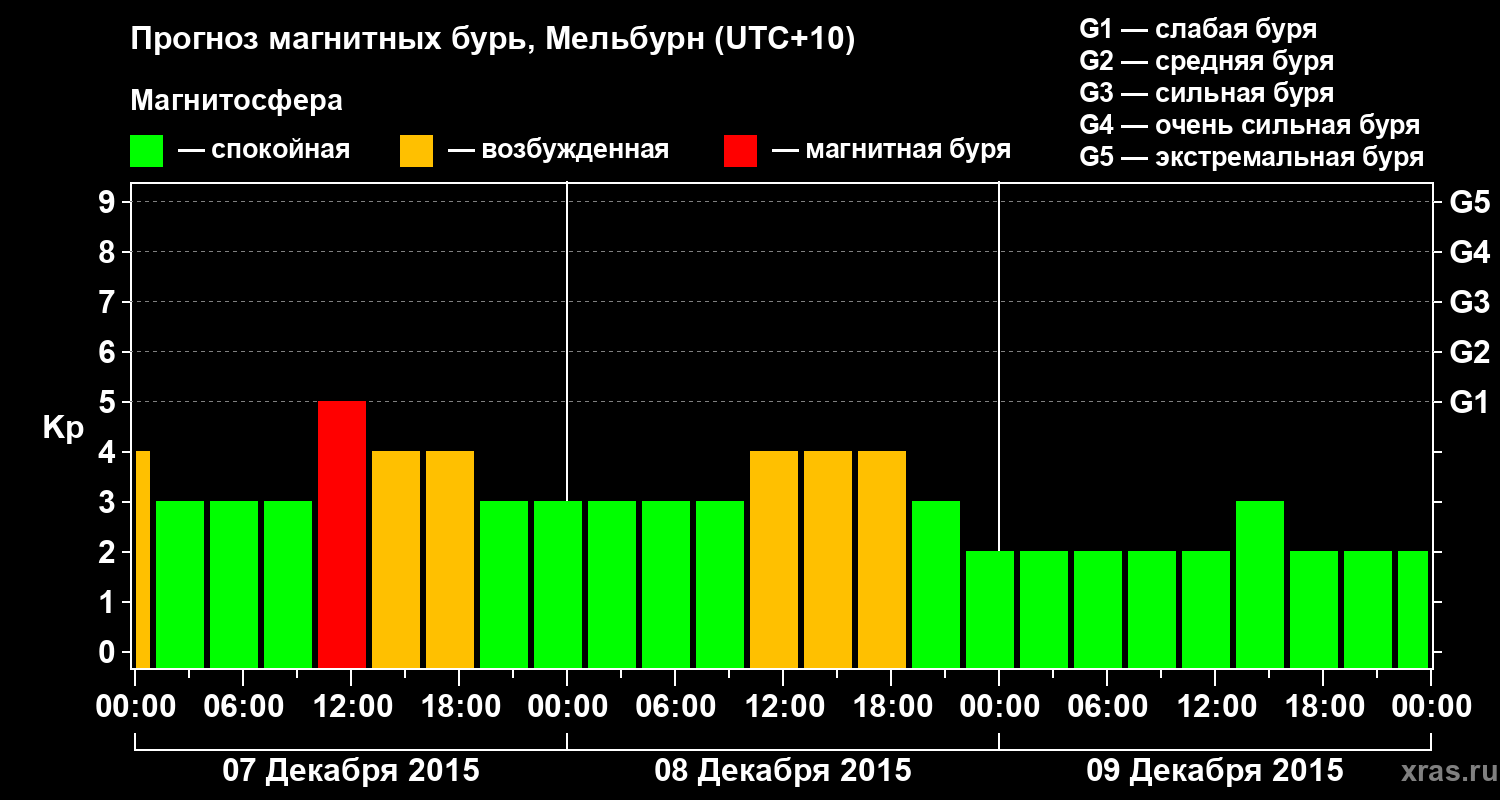 Прогноз магнитных бурь в Мельбурне — 7 декабря 2015 года