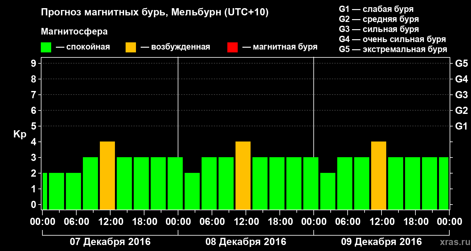 Прогноз магнитных бурь в Мельбурне — 7 декабря 2016 года
