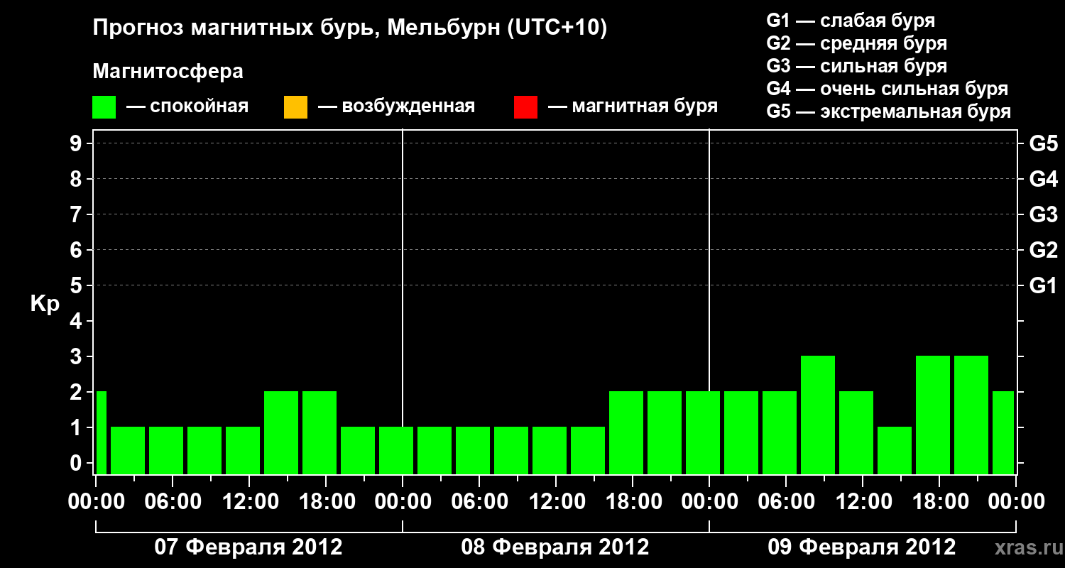 Прогноз магнитных бурь в Мельбурне — 7 февраля 2012 года