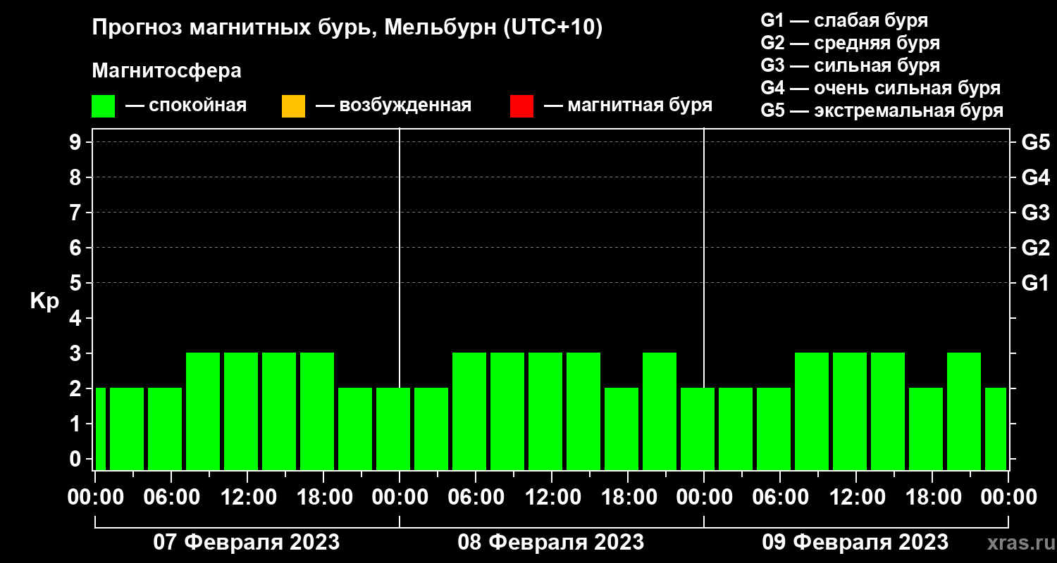 Прогноз магнитных бурь в Мельбурне — 7 февраля 2023 года